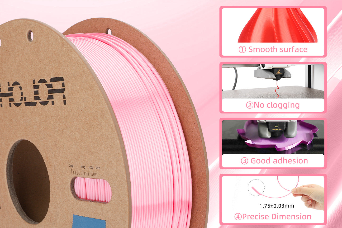 (1)For Silk PLA, if you want to get a better gloss or surface, you can increase the temperature (not too high) and decrease the speed appropriately. Explore the printing parameters that work best for your printer by fine-tuning them.